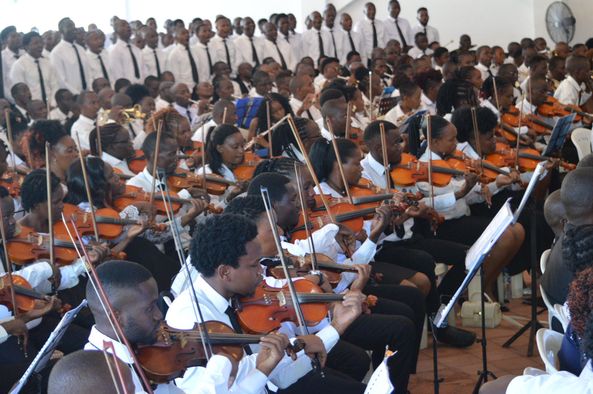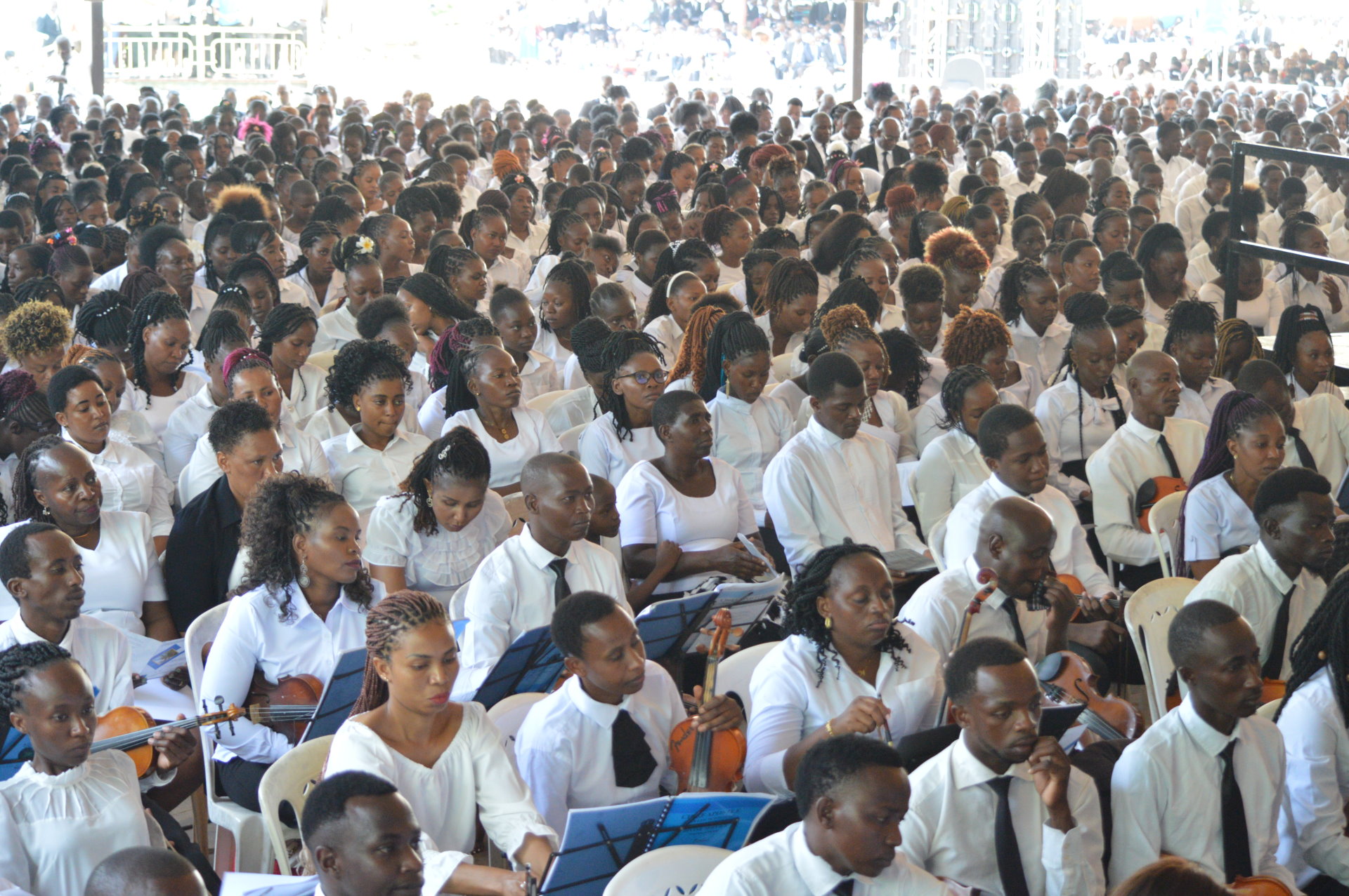 A combined choir and orchestra supported the sermon with moving performances. In all this, we conclude the visit of the chief Apostle with the words “Glory be to God, our father”.